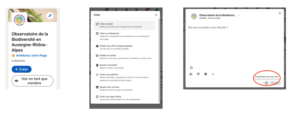 • Cliquer sur "Créer" (à gauche) puis "Créer un post"